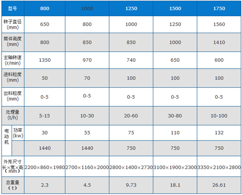 復(fù)合式破碎機(jī)技術(shù)參數(shù)