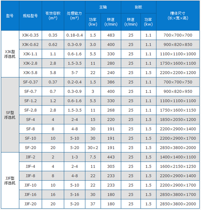 浮選機(jī)技術(shù)參數(shù)